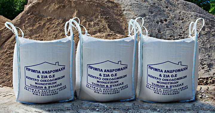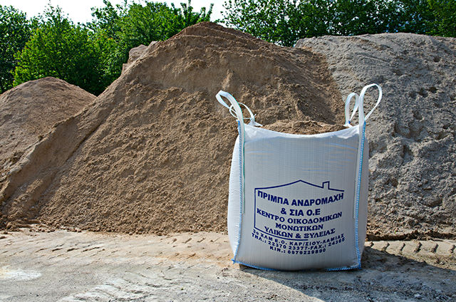 Όλα τα υλικά μας είναι διαθέσιμα σε big bag απο 0,5 κυβικά έως 1 κυβικό, σε σακούλες των 25 kg είτε σε χύμα ποσότητες έτσι ώστε να ικανοποιούνται όλες οι ανάγκες ενώ μεταφέρονται με ιδιόκτητα γερανοφόρα ή ανατρεπόμενα οχήματα άμεσα στον εργοταξιακό σας χώρο.